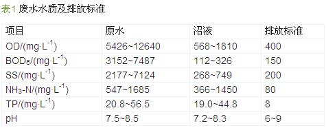 該養(yǎng)豬場主要來源于沖欄水、豬糞尿等,具體水質(zhì)水量及相應排放標準見表 1。
