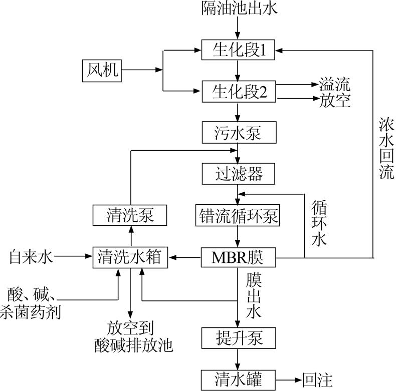 在充分調(diào)研基礎(chǔ)上形成的水處理工藝設(shè)計方案,有效地解決了設(shè)備體積小、含油廢水處理難度高的技術(shù)難點,在保證出水指標的基礎(chǔ)上,合理利用有效空間,形成了生化處理+膜處理的獨特處理工藝。經(jīng)處理后,管式膜出水油≤5 mg/L,懸浮物粒徑中值0.5 μm,SS 0.7 mg/L,SBR為0。